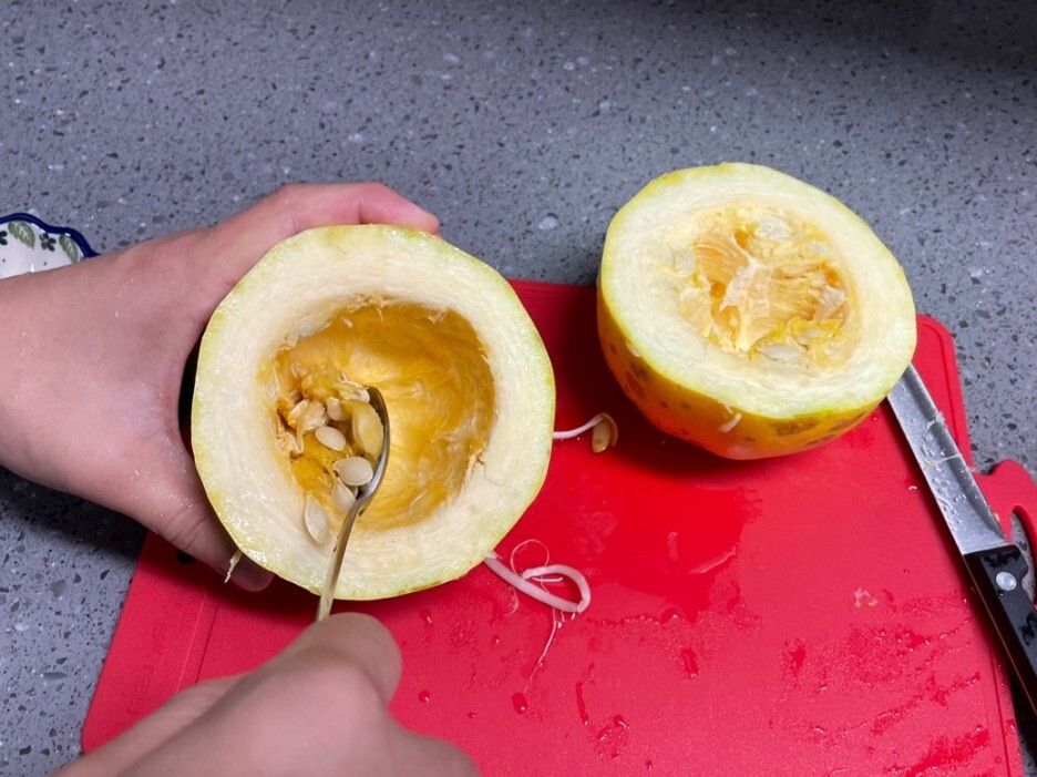3. 삶은 호박을 건져 면을 만들어낸다.(??)